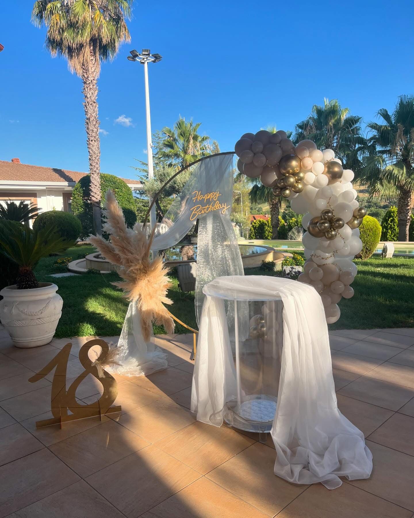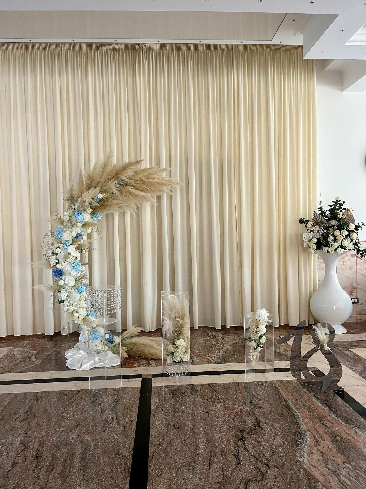 Progettiamo e realizziamo allestimenti completi per chiese, location esterne, sale ricevimenti, ville, giardini e ambienti privati. Ogni spazio prende vita attraverso scenografie personalizzate, composte da fiori freschi, tulle, organze, palloncini, decorazioni tematiche e arredi coordinati.